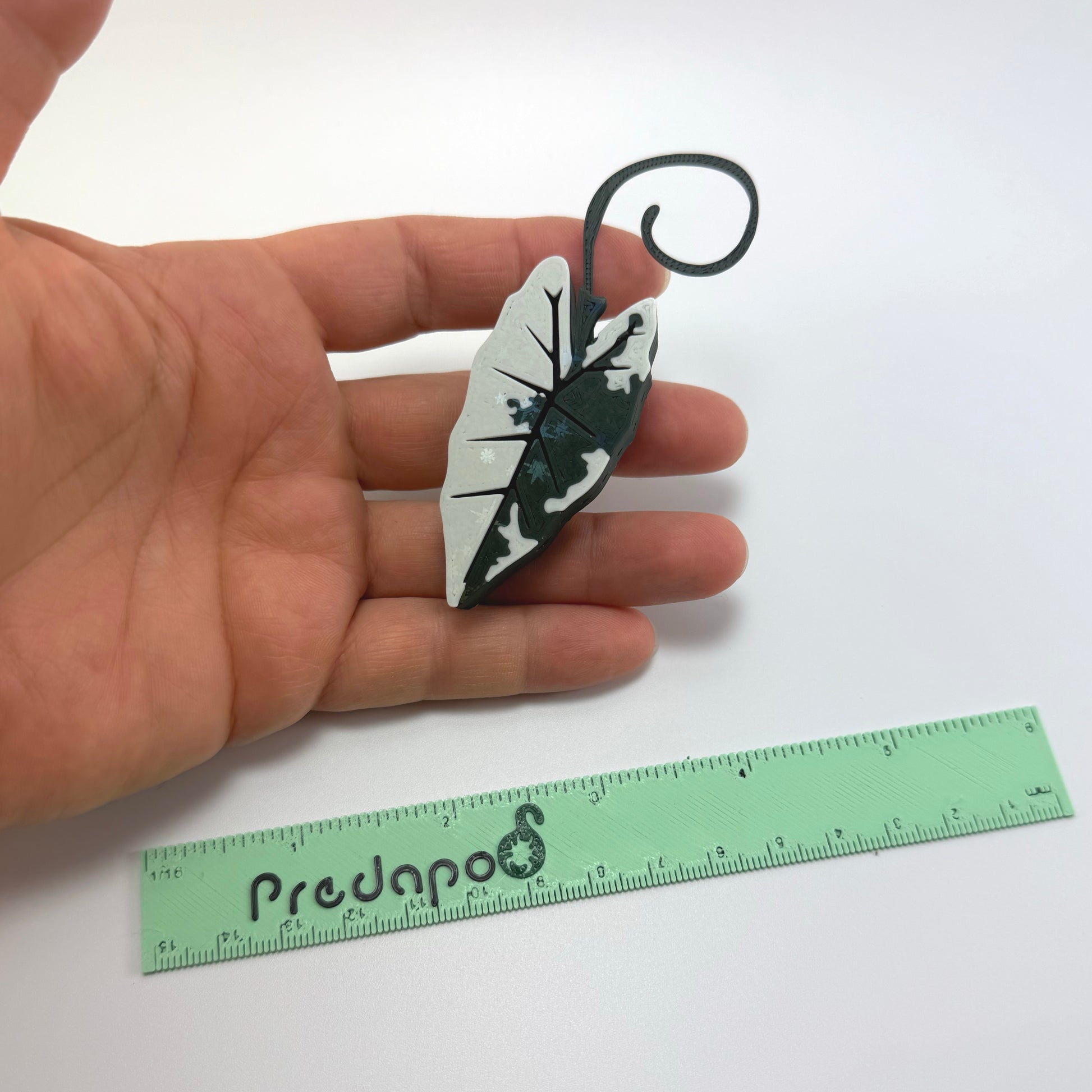 Predapod in the shape of a variegated Alocasia Frydek leaf with design on both sides. Standard size can hold up to 2 tsp of medium. Large size - 4 tsp.