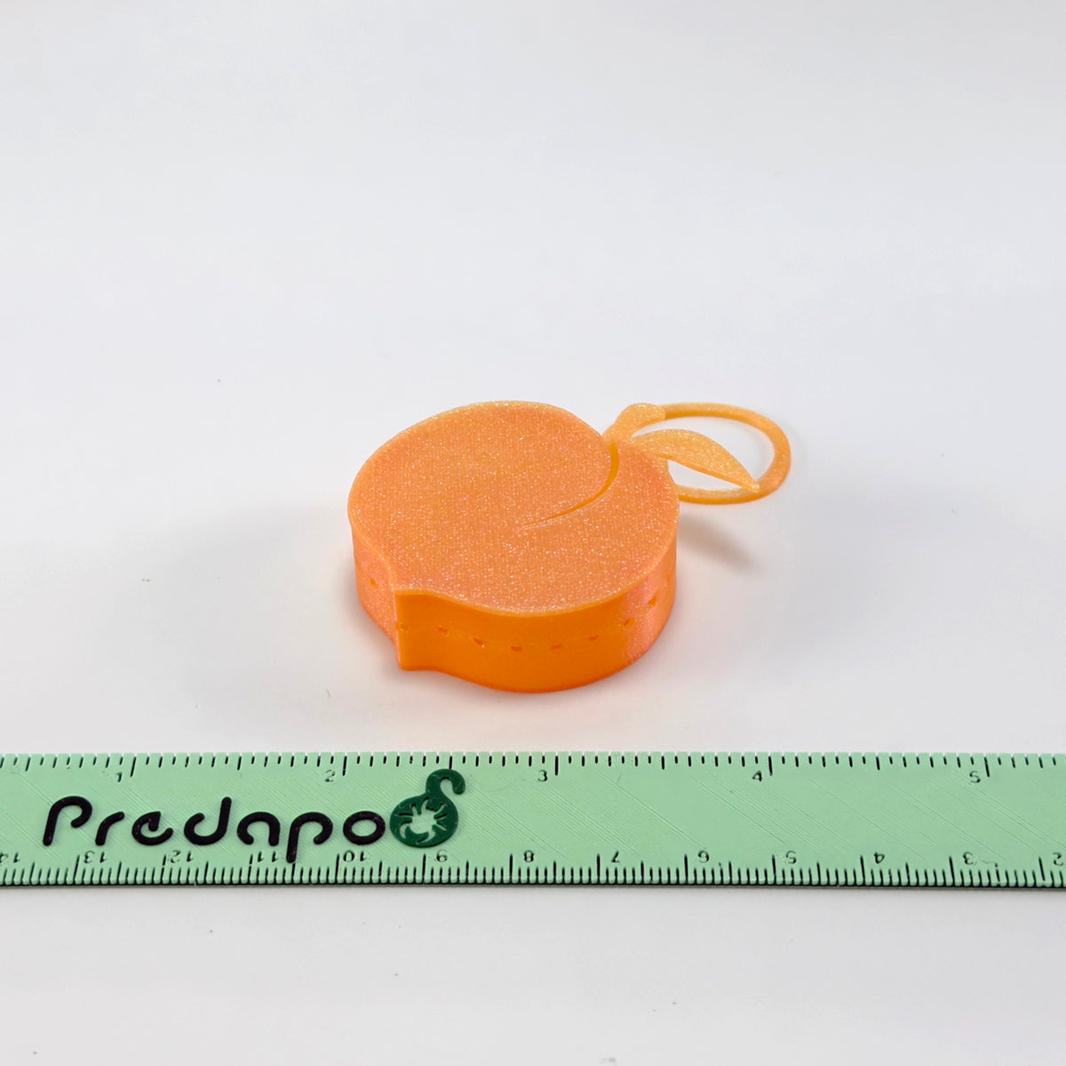 Predapod in a shape of a peach. Bottom is solid color with additional holes for mite release. Standard size can hold about 1 tbsp of medium.